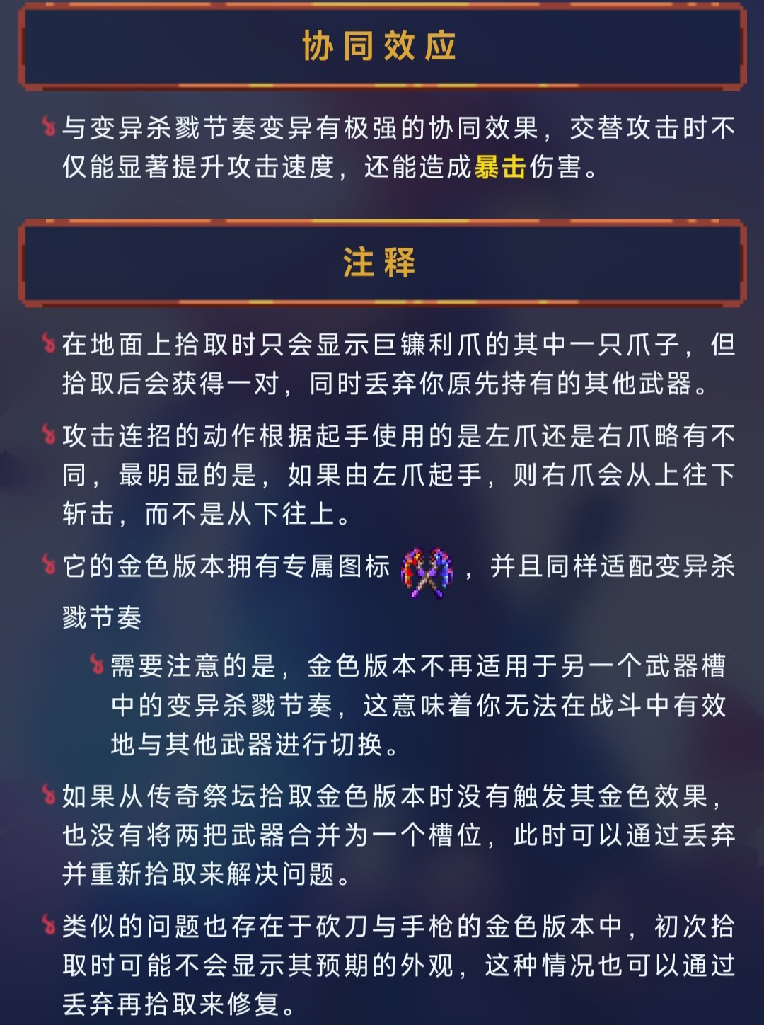 由于攻击速度快且暴击稳定,狂暴之刃能高效触发变异武器大师与连击