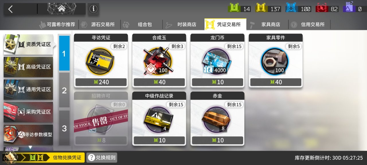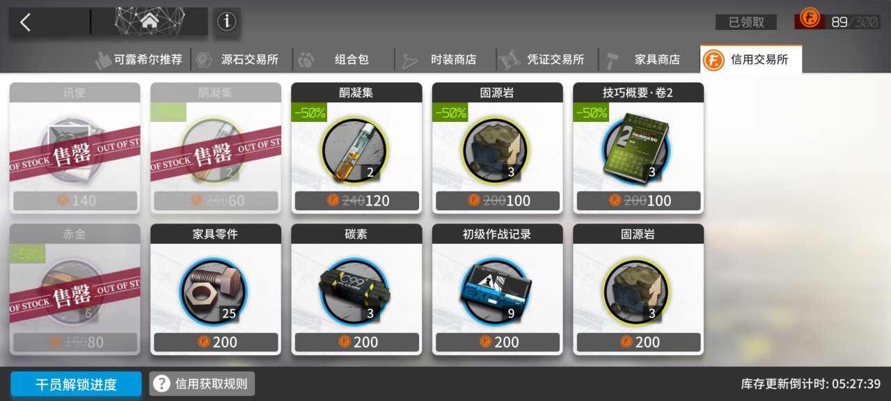 信用商店通過消費信用購買,信用可通過會客收集線索、交流線索獲得,前期優先招聘許可與加急許可,其次是購買幹員,折扣75%的材料也可以酌情購買,信用儲存極限爲300點,每天早點五點超出300點信用外的信用將被系統刷新,記得使用