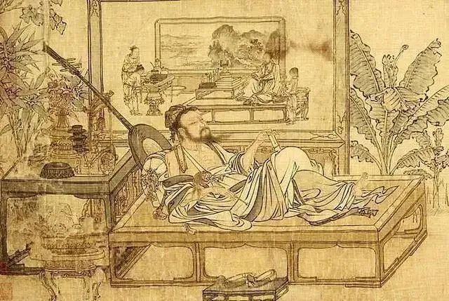 元 刘贯道 《消夏图》中主人公手持拂子 美国纳尔逊·艾特金斯艺术博物馆