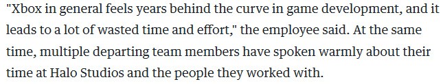 作爲曾被視爲Xbox品牌旗艦的光環系列守護者,光環工作室(原343 Industries)已有五名員工被裁。據Engadget報道,該工作室一名開發者透露團隊士氣已跌至"歷史最低點"。