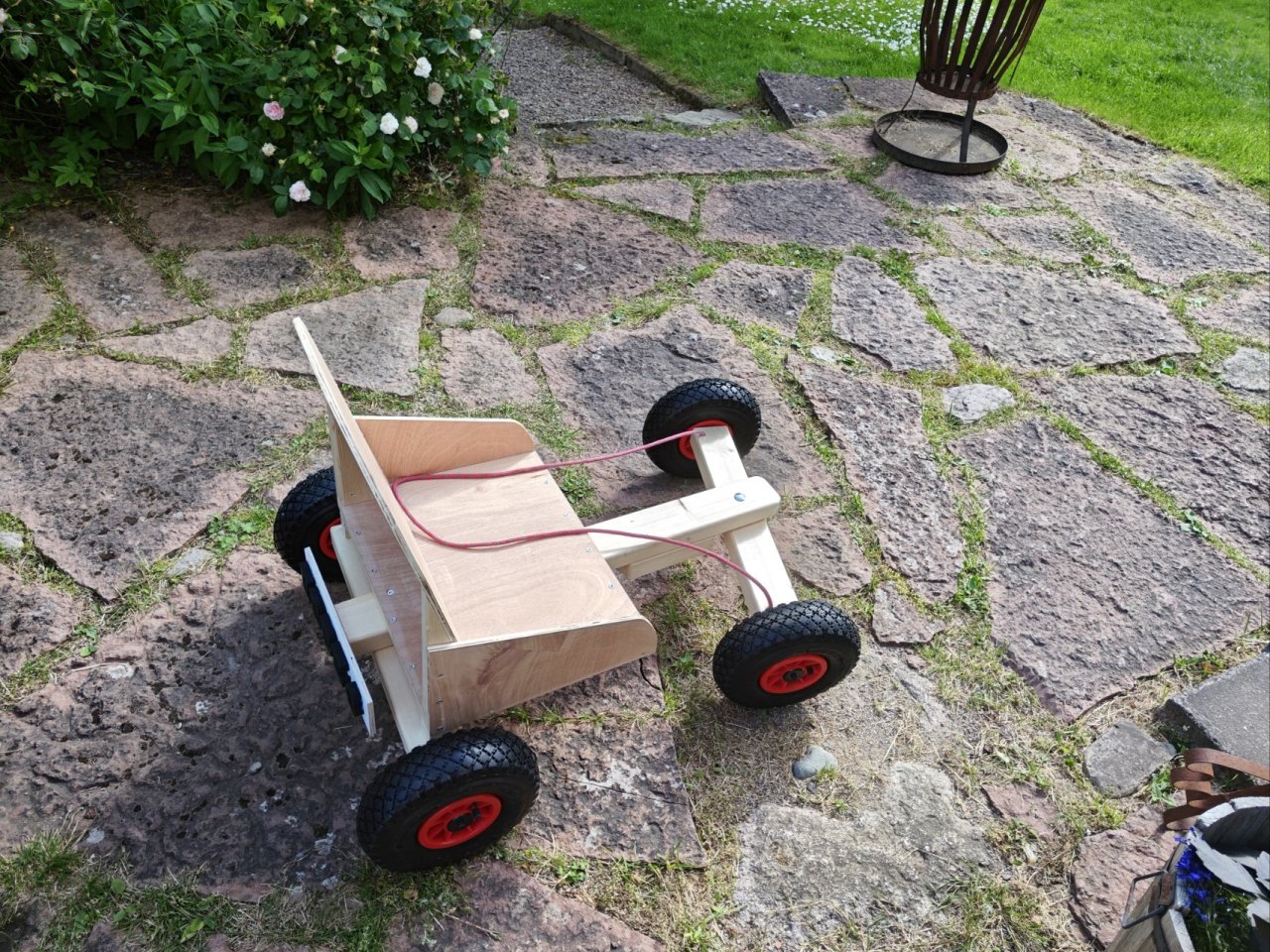 全手工制作,还自己画图配了安装说明。爷爷现场带着他,装轮子,装座椅,装车牌,钉钉子固定。