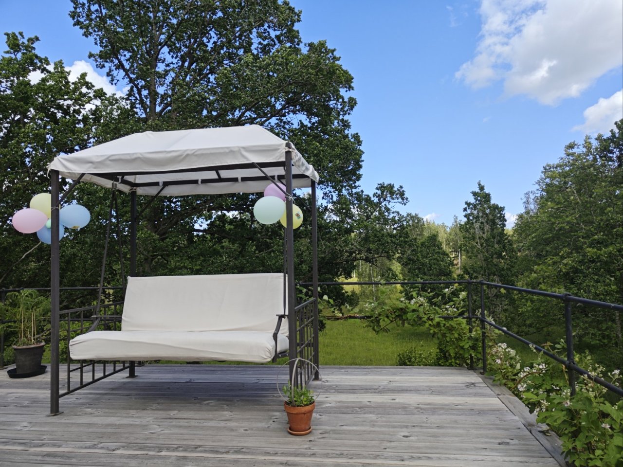 看到了两三个秋千椅,他们是真的很喜欢户外啊。不过也能看出来,周围有多偏,全是树木,看不到其他房子。