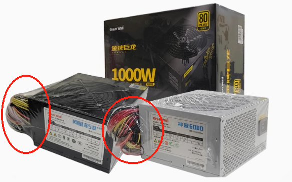 简单来说,非全模组就是线材直出,不可拆卸的电源模组,如图所示,线材从电源内部直接出来的,就是非全模组,缺点是不方便理线,所有的线都得埋在机箱内部,乱糟糟。当然,是不是非全模组,也不代表电源的品质,只是走线的方法不一样