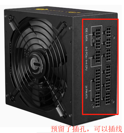 全模组电源呢,和非全模组相反,线材和电源分离的,预留了接口可以对插,缺点是对比同级别的,价格偏高,优点的方便理线,需要哪些线,插哪些线就好。