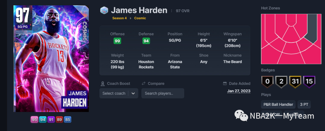 魔術師哈達威統治已久,現在換一個195CM,模型尚可,進攻拉滿,防守靠打造的哈登。我覺得非常可以。