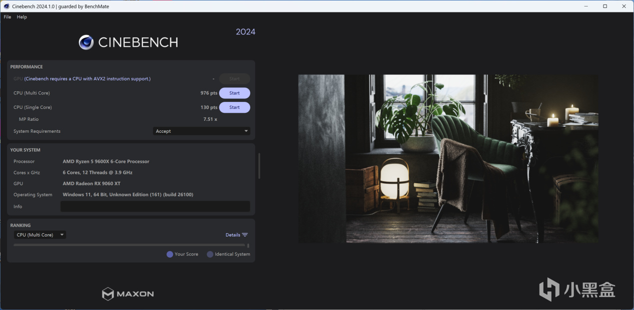 6核12线程的9600X,没选择7500F的原因还是7000系在单核方面比较弱。