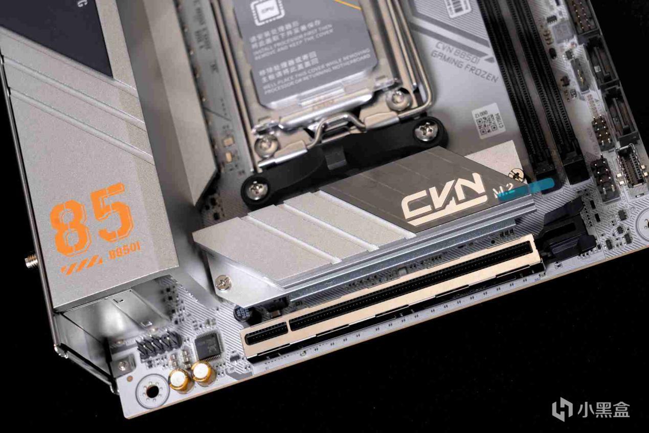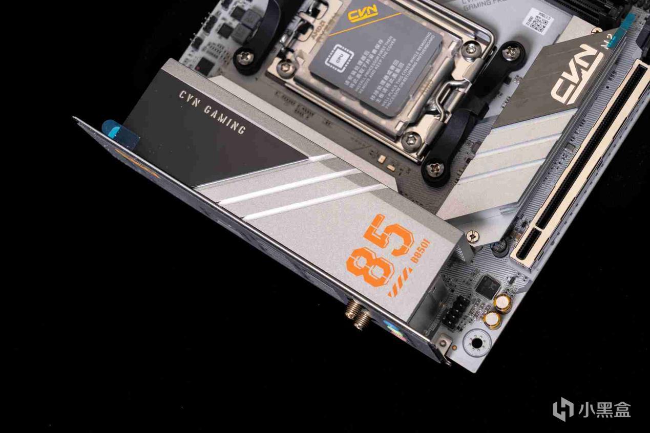 黑色部分是CVN传统的CVN GAMING的反色设计,而作为CVN系列的特色,橙色的85 B850I也出现了在了散热装甲的底部,起初还不理解,后来有一次恍然大悟。