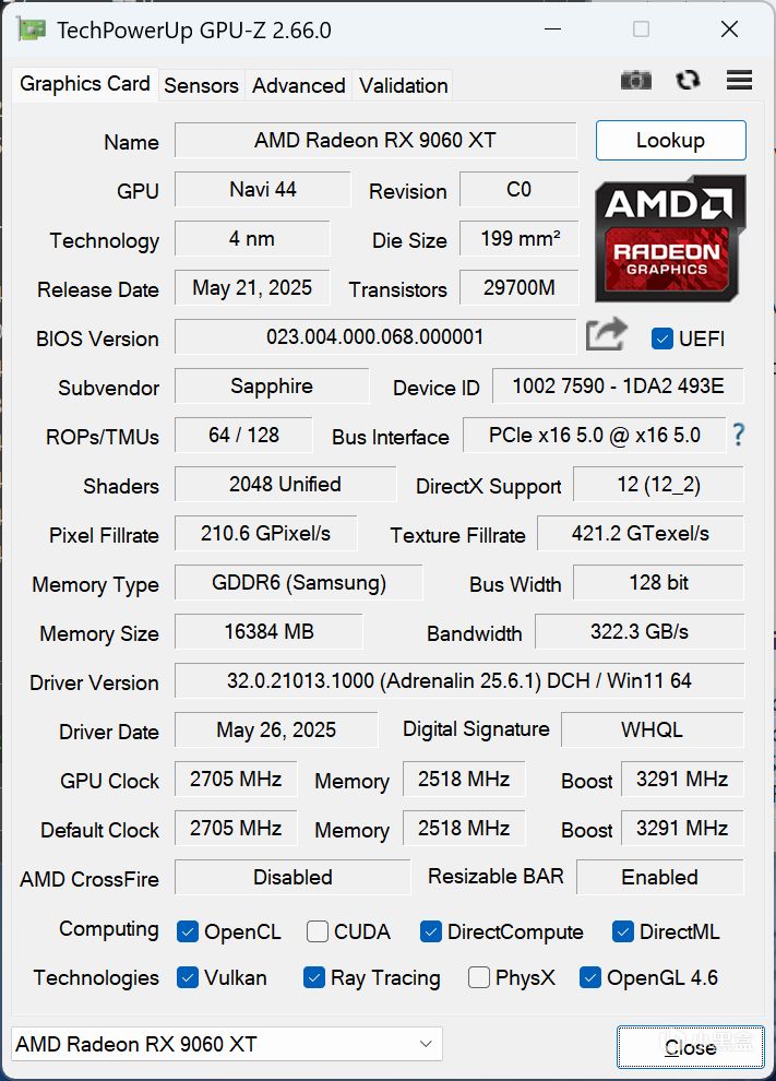 显卡:蓝宝石 RX 9060 XT 16G 极地