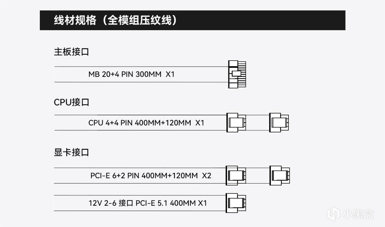 标配的压纹线还是很方便理线的,原生12V 2-6线材也是600W规格。但是这里我还是想提一嘴,就是利民这个比较迷惑的线材规格。