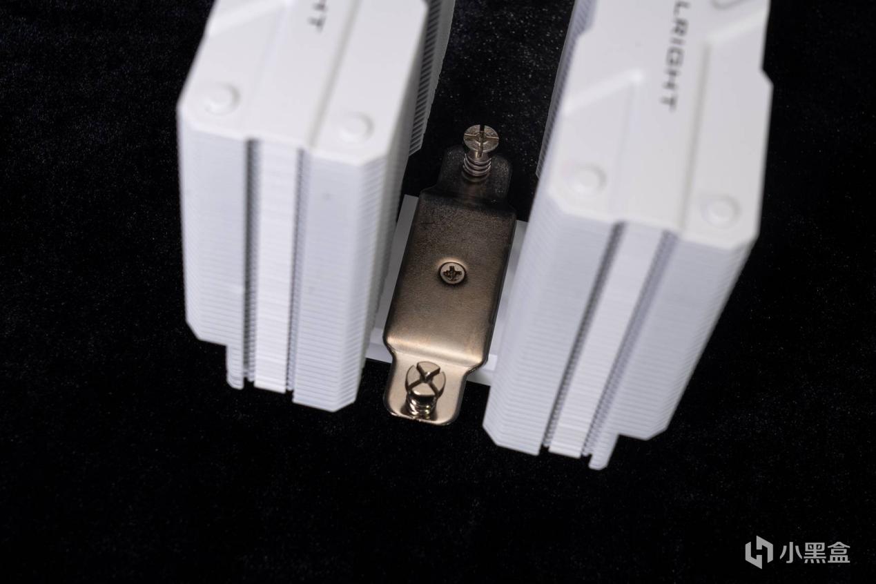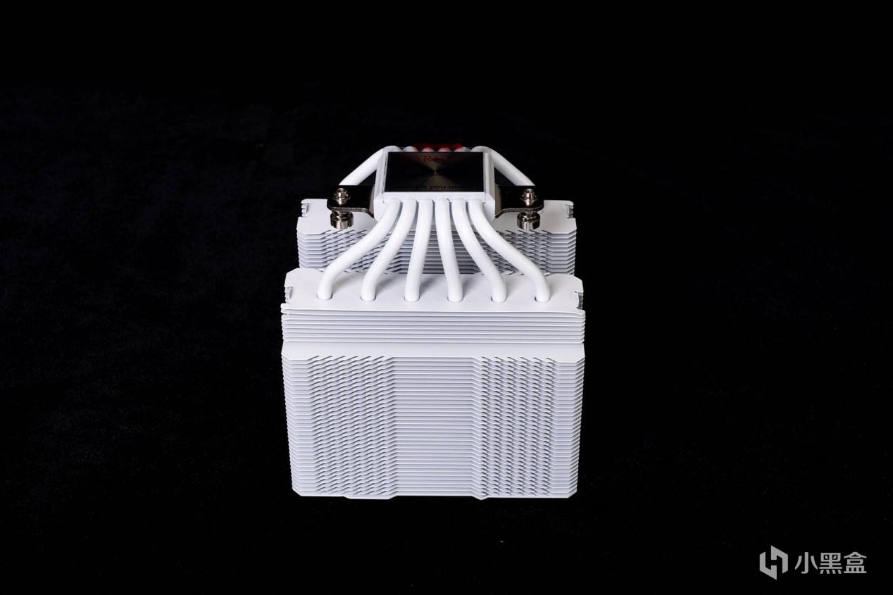 采用六热管+全铝穿Fin鳍片的设计,两侧都做了底部收紧,避免安装与内存产生干涉。这里是知识点,后面会考。