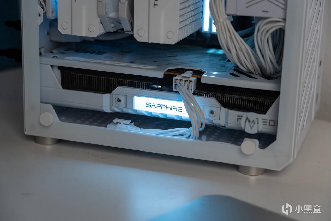 ARGB接口可以自PCB尾端的背板镂空中接至主板,也可以在系统中收到蓝宝石TriXX软件的控制。
