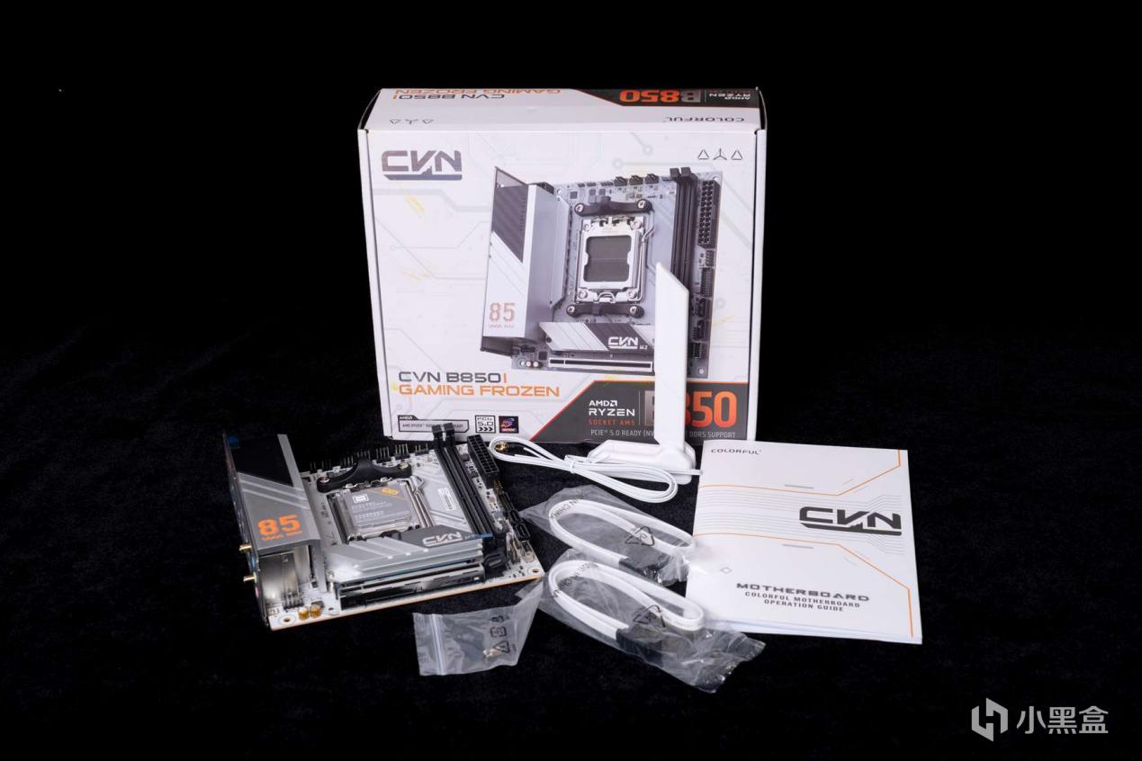 这次装机要用到的就是B850芯片组的ITX,隶属于CVN系列的B850I Frozen V14登陆舰主板。配件比较简单,SATA线、天线、说明书和M.2螺丝