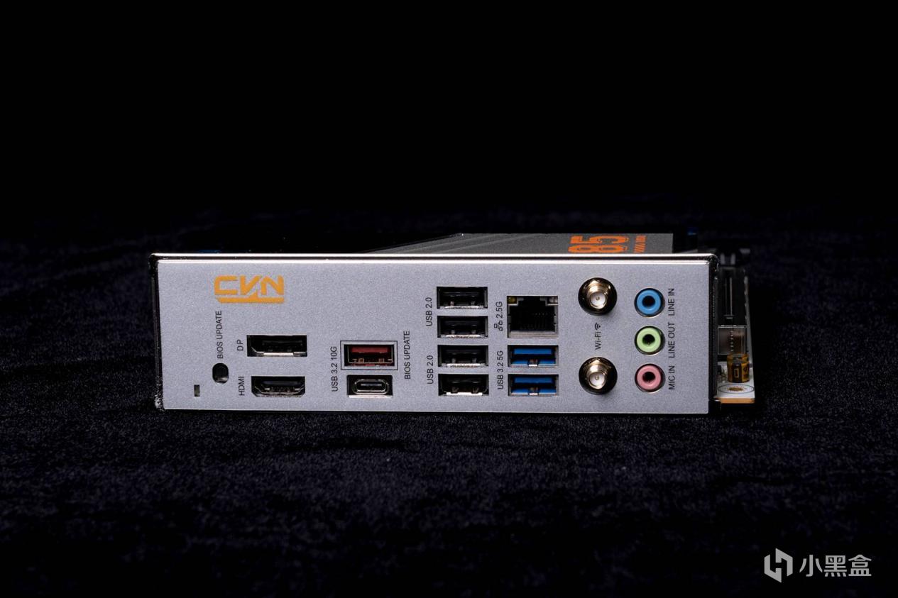 背板接口方面,七彩虹还是忘不了他的USB2.0,给了4个,此外还安排了USB 3.2 5G 两个,USB 3.2 10G带BIOS UPDATE一个,Type-C接口一个,8个U口给足了扩展性,视频接口方面,给了一个HDMI和一个DP,网络方面是2.5G网口和支持Wifi 6E的天线接口各一组,还有音频接口3个,也是做到了面面俱到。