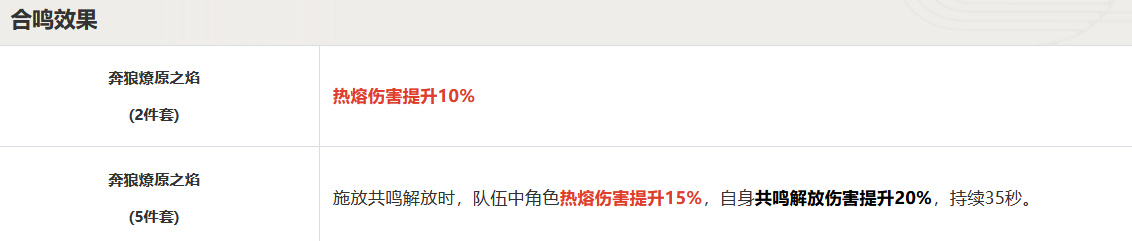 两件套热熔提升,五件套拐全队热熔伤害15%,再提升共鸣解放伤害,都是露帕需要的。