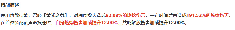 面板攻击力/爆伤,提供攻击提升,共鸣解放伤害提升,还能够给全队增加热熔提升光环,全队提升真是香。