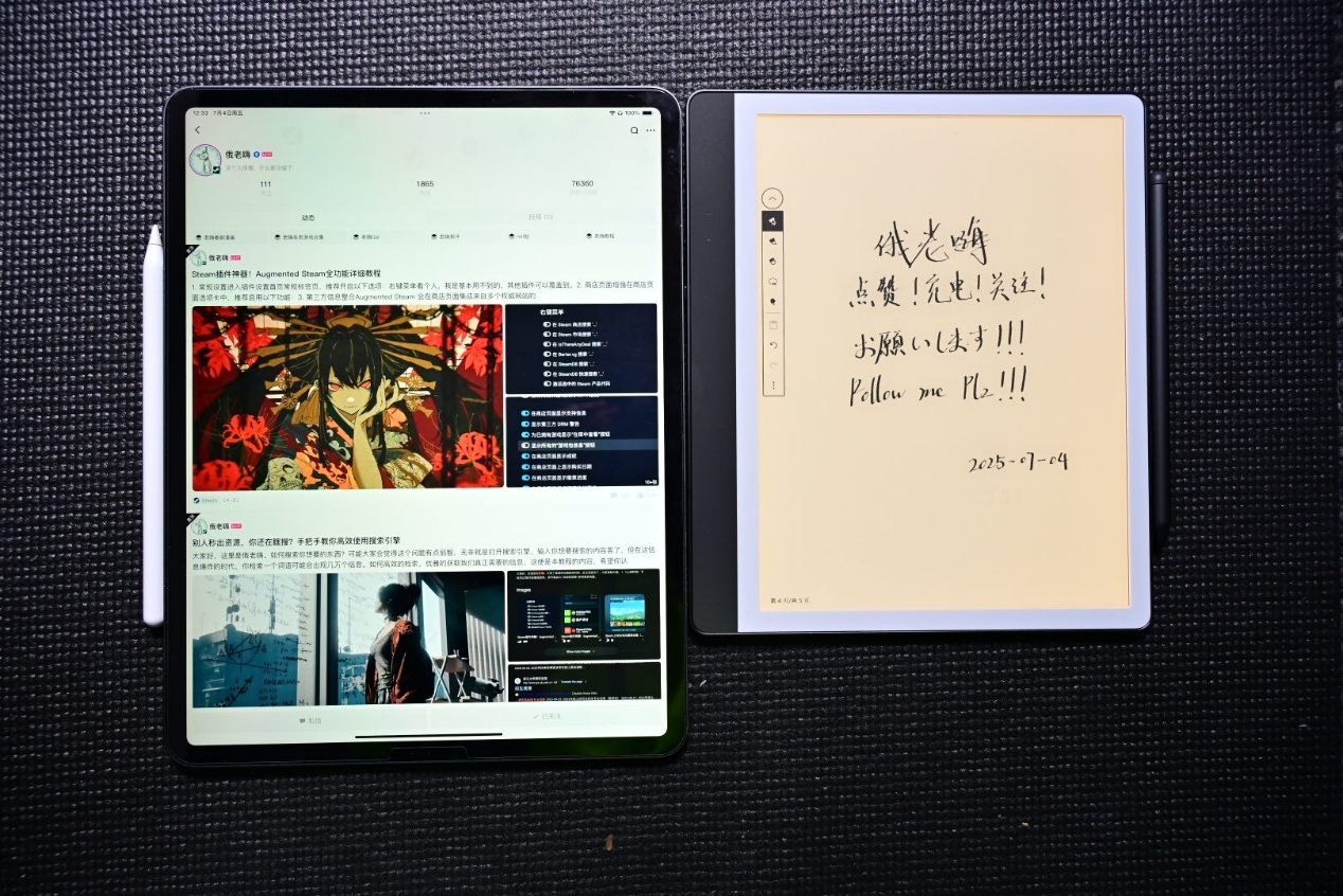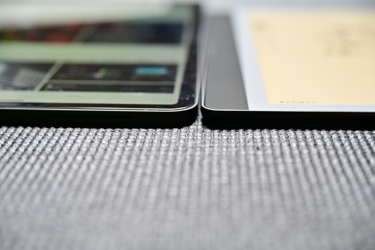 與我的上古老物Ipad Pro 2019 12.9寸 大小對比。順便用了一下高級筆,阻尼感很舒服。