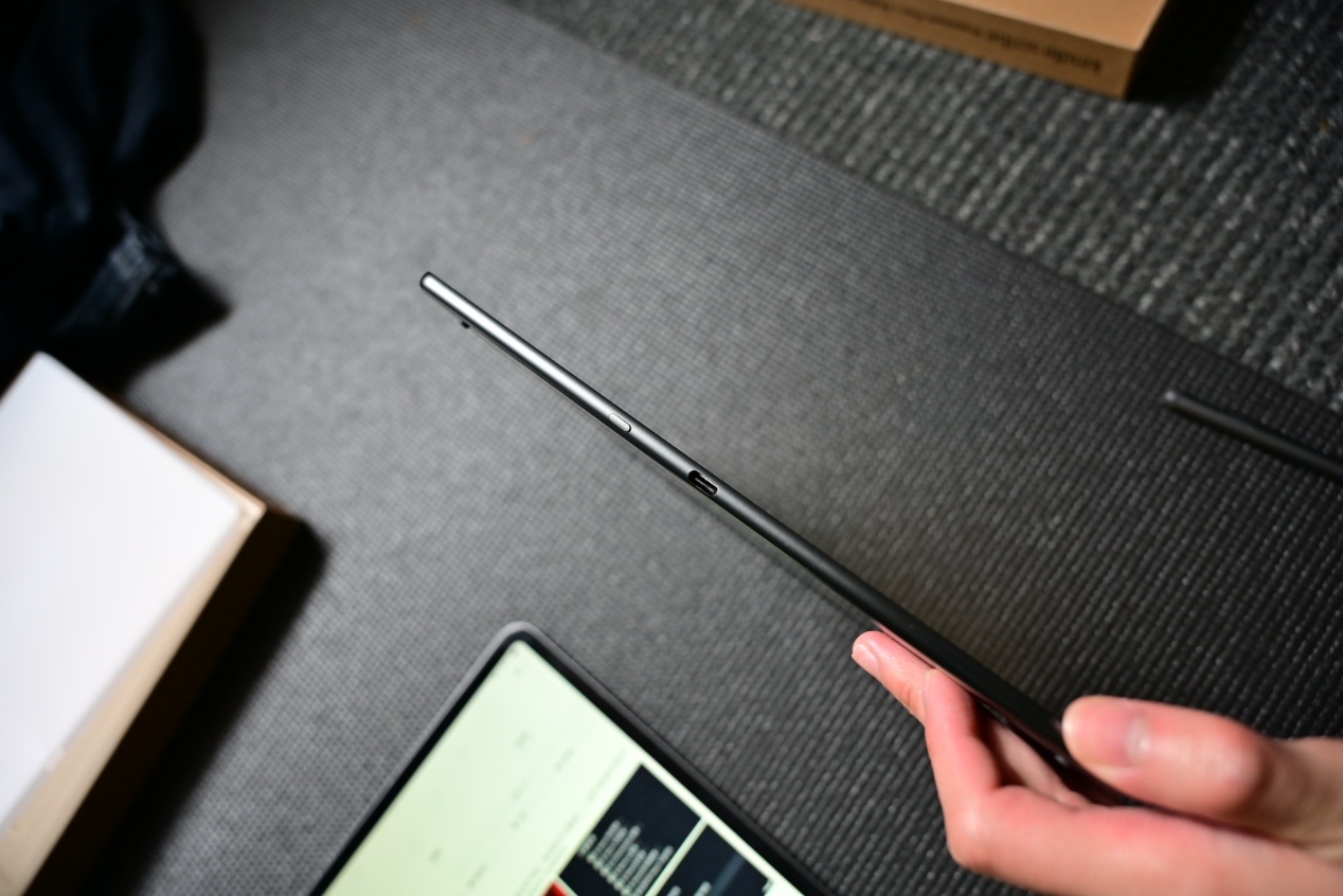 硬件素質沒得說,一體成型的鋁合金機身看着很舒適,不規則的白邊強迫症看着有點不爽。10.2 寸的屏幕大小觀感還算可以。