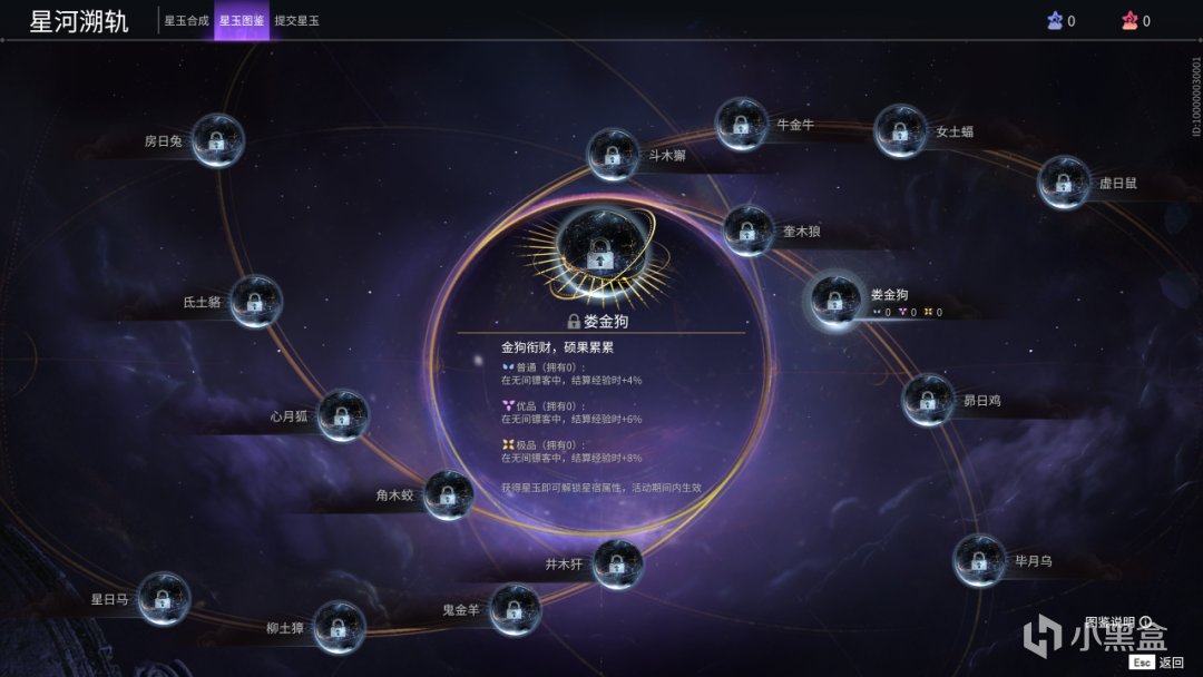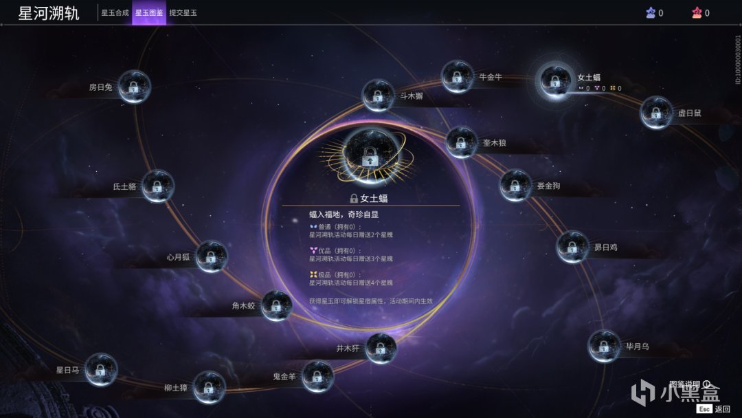 獲得對應的星玉即可解鎖星宿圖鑑,獲得不同的屬性加成。