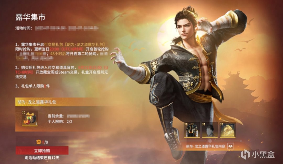 【胡爲·龍之道露華禮包】可消耗花露購買,開啓後可獲得胡爲龍之道系列時裝髮型限定頭像。同時,此次【胡爲·龍之道露華禮包】作爲露華集市可交易禮包,將限時限量售賣,每位英雄只可購買2次,且僅能開啓1次