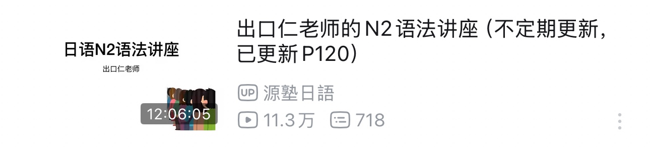 与N4-N3类似,我看完了N2系列的语法视频当作预习。