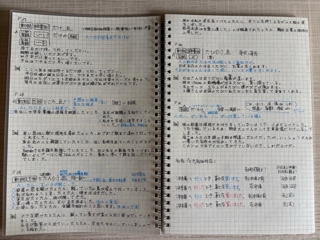 复习完之后,为了学标日中级比较顺利,我还预习了一遍N3的语法,那个时候我放暑假,时间很充裕,所以做了很多的笔记。N3阶段的视频是纯日语讲解,但是讲解的语速比较慢,用词也比较简单,都是比较符合N4水平的,偶尔会有一点点不懂,但是基本可以忽略。
