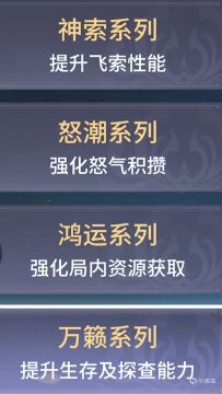神索、怒潮、鸿运、万籁四个分支,针对性强化你的战斗风格~侠影夺金中同样生效哦!