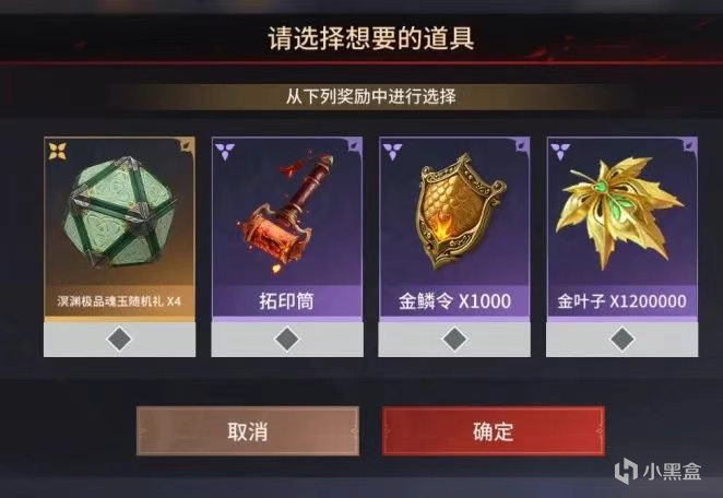 打开之后可以从以下奖励中任选一个:金叶子*1200000,拓印筒*1,金鳞币*1000,溟渊极品魂玉随机礼*4!
