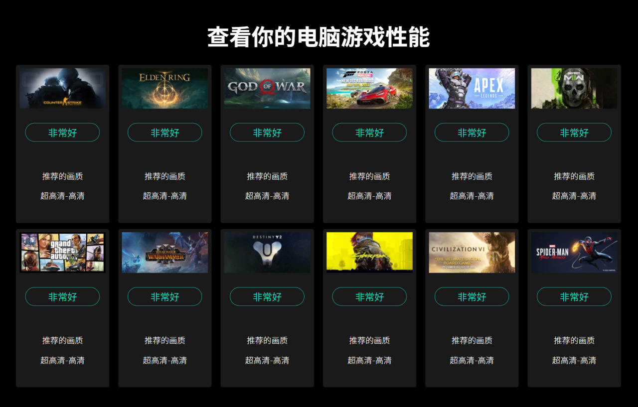 Nero Score预估的游戏性能如上,主流大作全都是“非常好”。