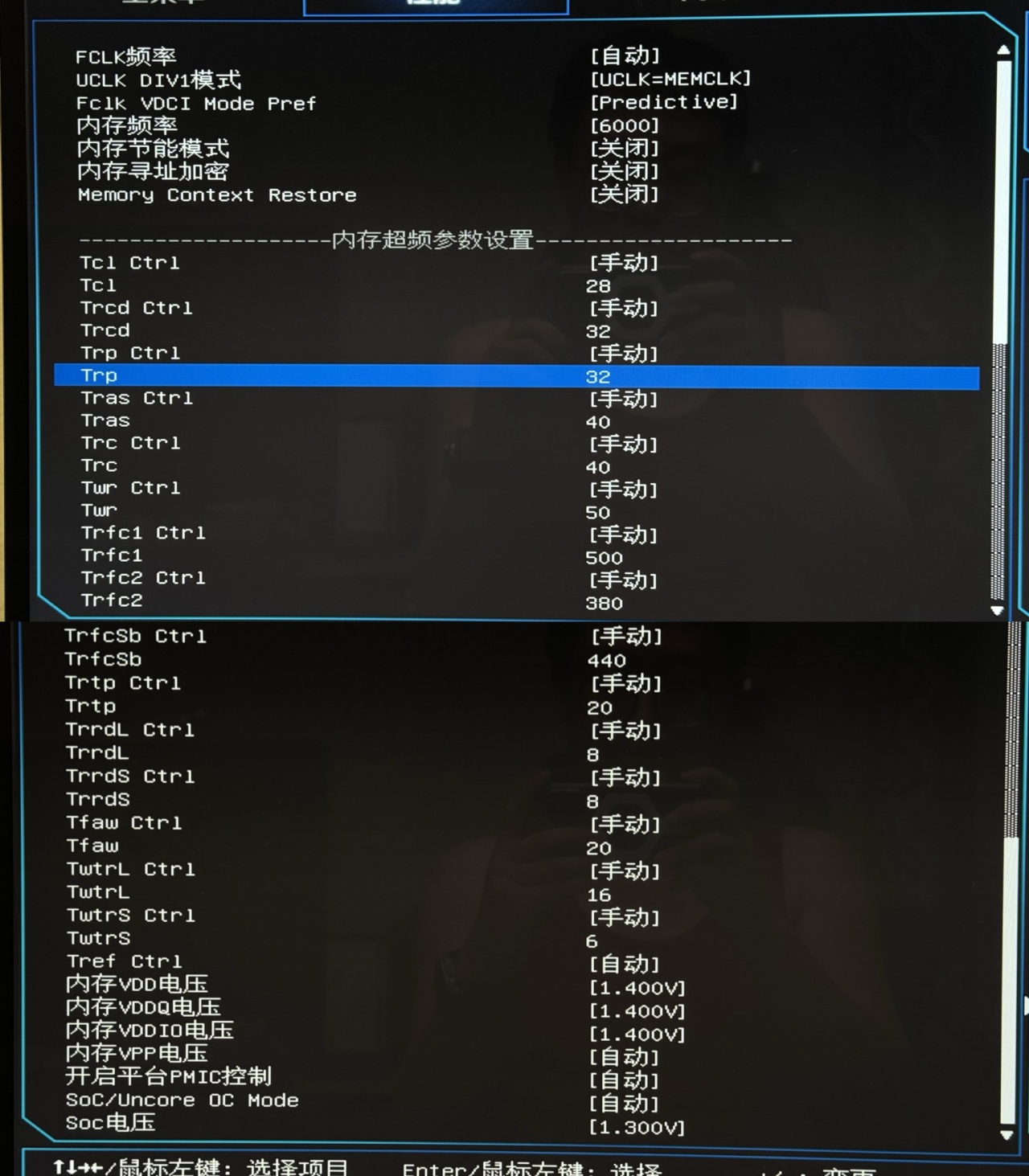 但对于AMD 9000系平台来说,6000C28是甜点频率,所以我我按照市场上6000C28内存产品的时序进行调节(各位可以参考尝试):