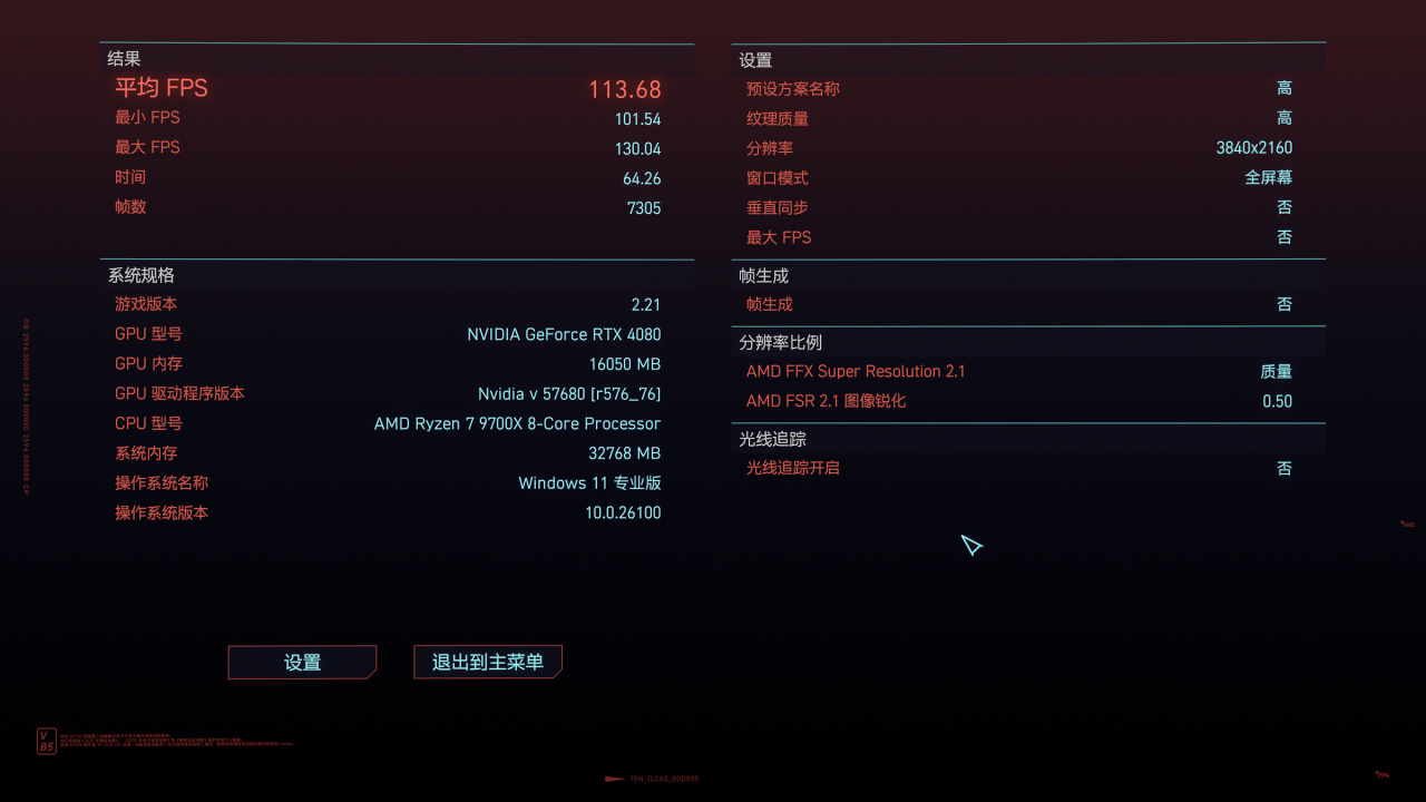 同样,这款游戏的benchmark可以显示CPU的性能,取CPU性能数据为准。