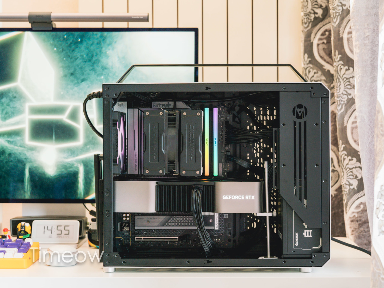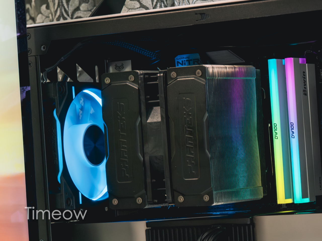 散热器是追风者的Polar T6,散热风扇我用了一个台达的工业扇+一个追风者的RGB扇,配合内存条的灯,整机光污染恰到好处。