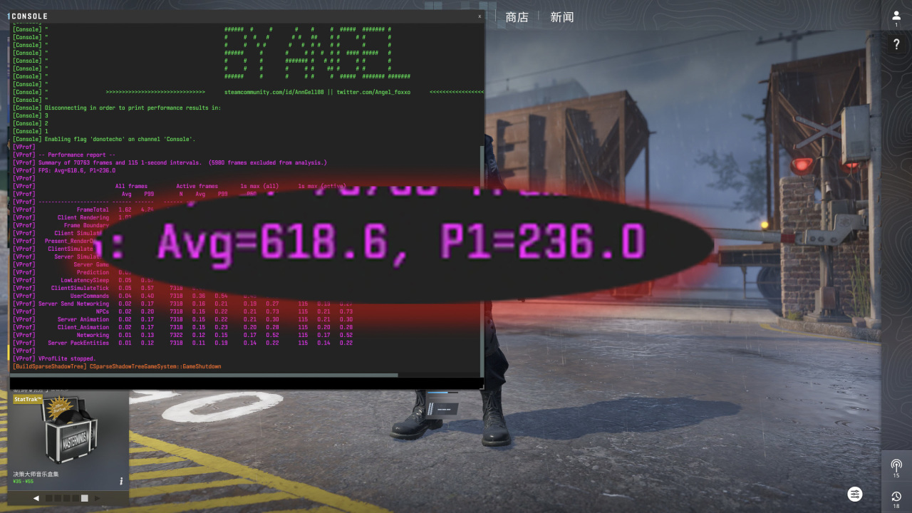 平均帧618,1% low帧236。