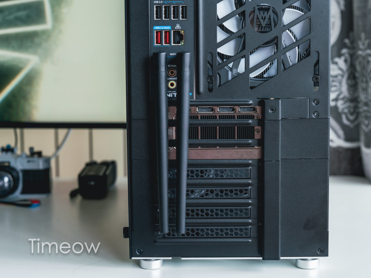 后置接口方面,HDMI有、DP也有。3个10G速率的Type-A和一个10G速率的Type-C的配置,连多个移动硬盘也没有压力,4个USB 2.0接口可以满足鼠标、键盘、电竞耳机等对干扰噪波要求较高的设备所需。除此之外,还有NAS玩家必备的2.5G网口、以及WiFi天线接口和高保真音频接口。