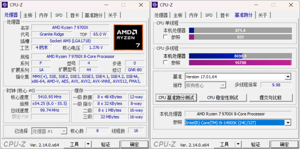 CPU:AMD RYZEN 7 9700X