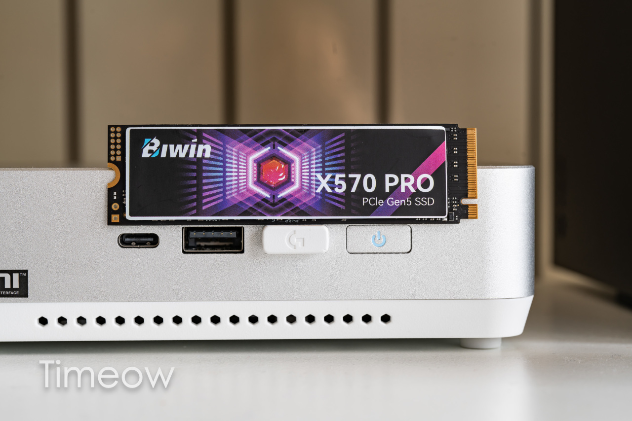 佰维X570Pro是一款满血14GB/s读速的PCIe5.0有缓固态硬盘,特别适合拿来测这款主板的M.2固态硬盘速率,且它的发热不低,正好可以验证一下主板自带的SSD散热器。