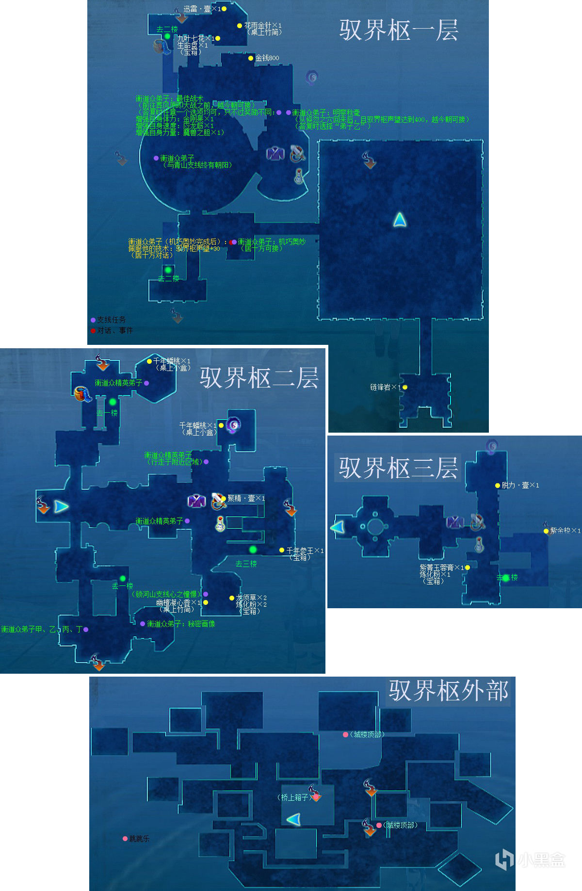 [主线]剧情后来到驭界枢→前往第二层主线点→前往第三层主线点→剧情后来到天晴之海→前往主线点。