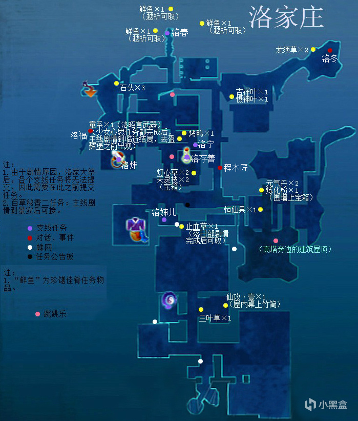 [备注]去洛家庄洛宁家拾取童系*1、天琴盘*1(一周目可能Bug没刷出宝箱,二周目有拿到)。