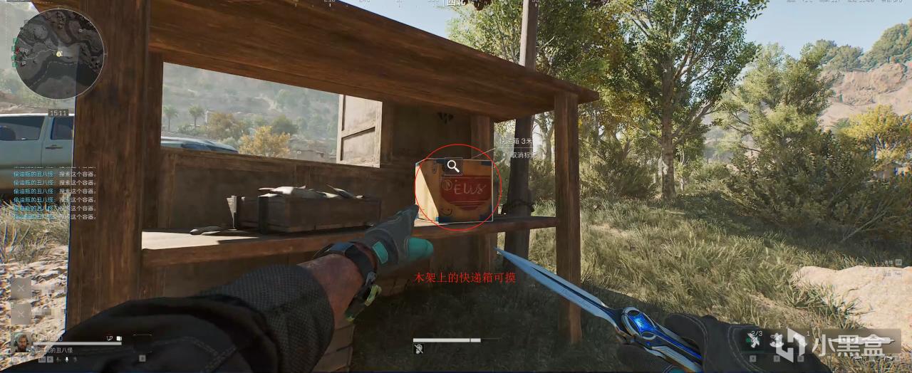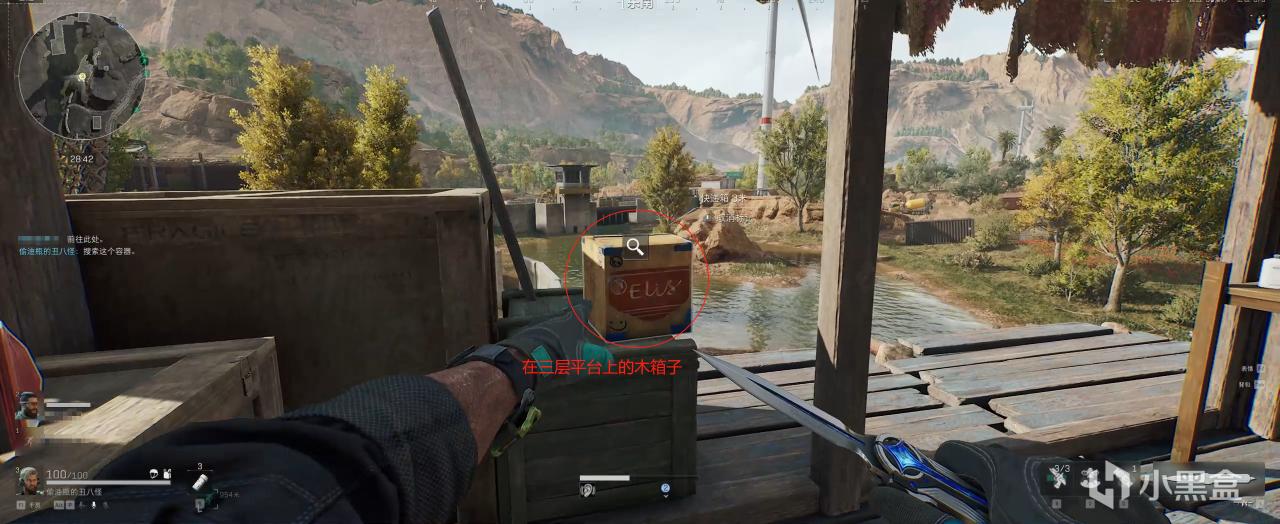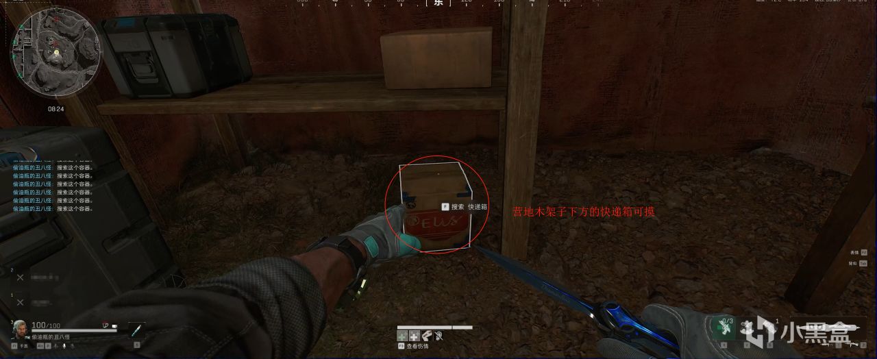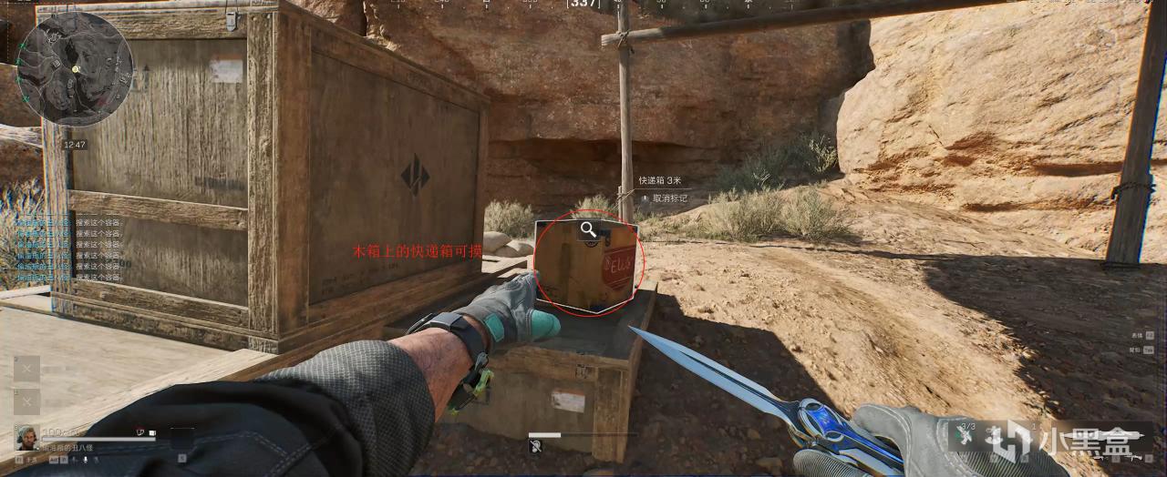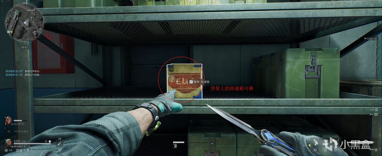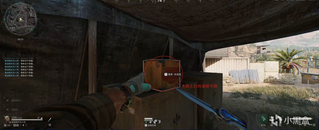 該快遞箱在前往地圖右下角撤離點的木架上,路過可以順手摸一下。
