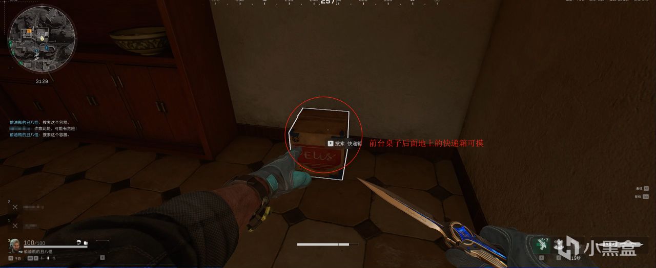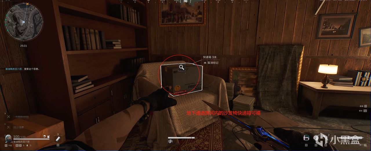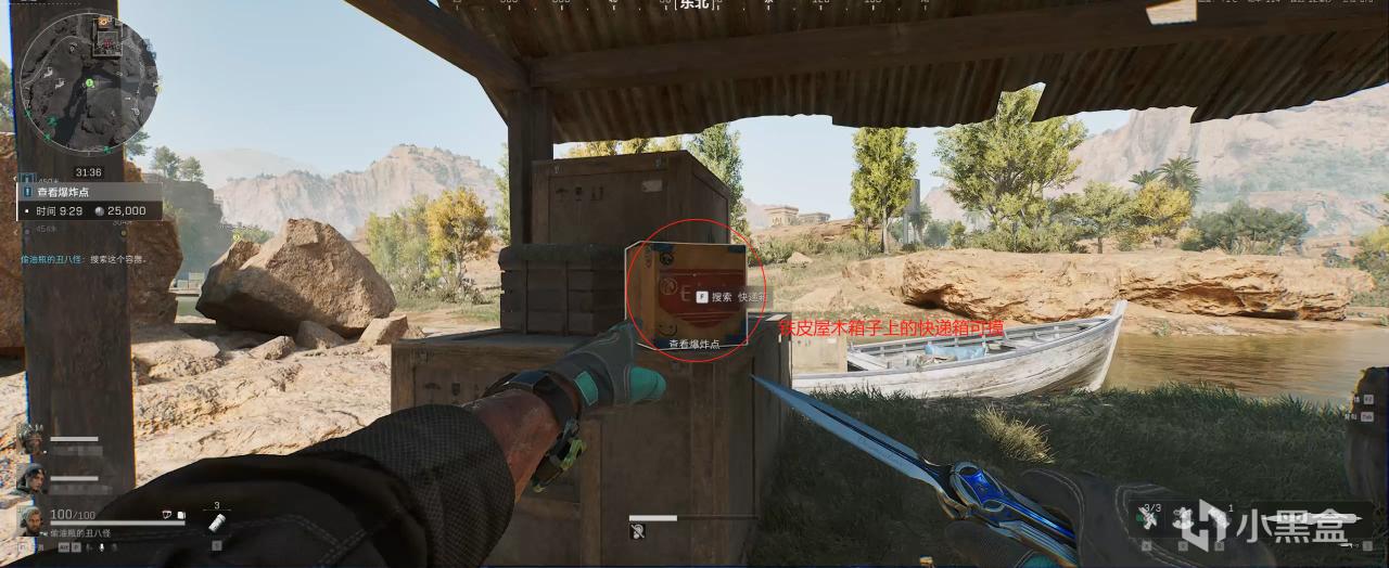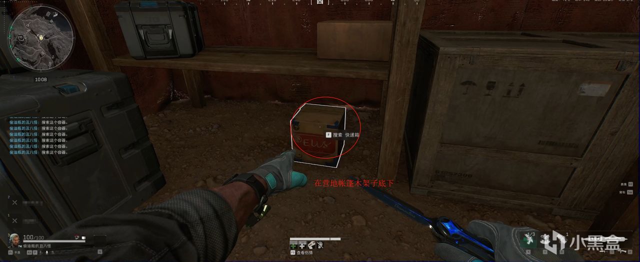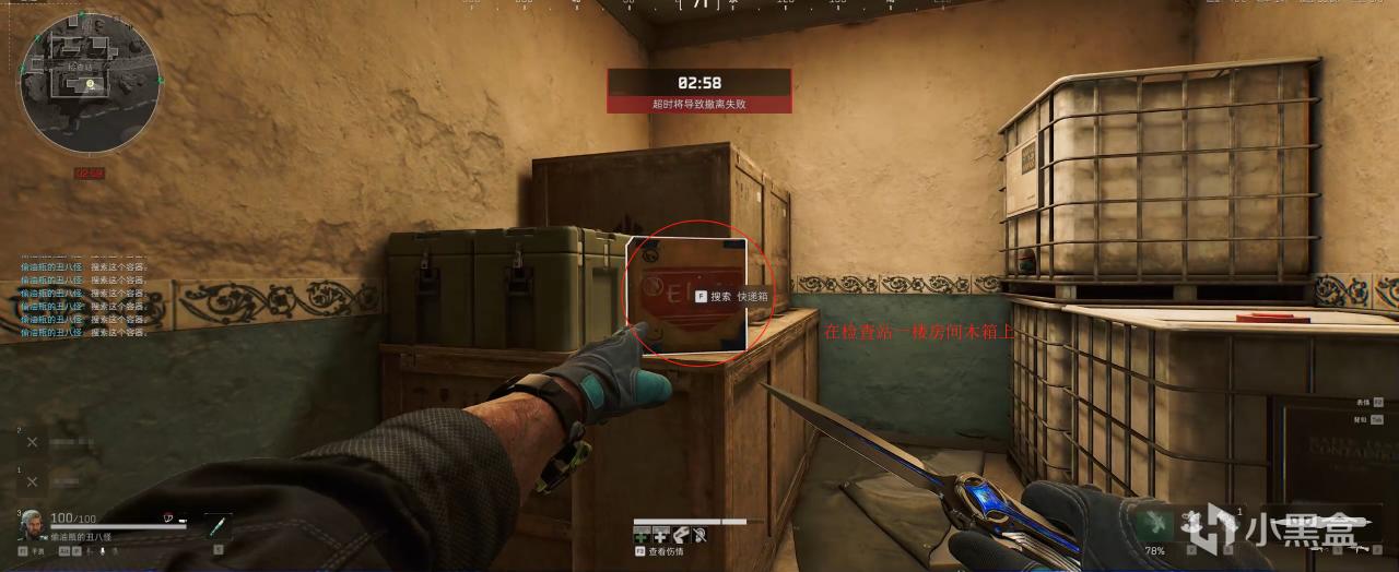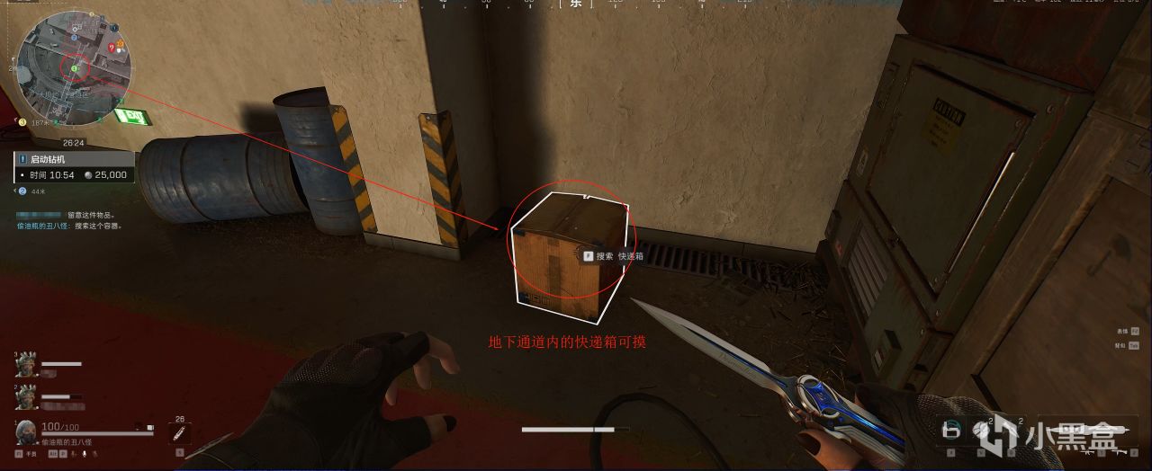 該快遞箱在前往地圖右下角撤離點的木架上,路過可以順手摸一下。