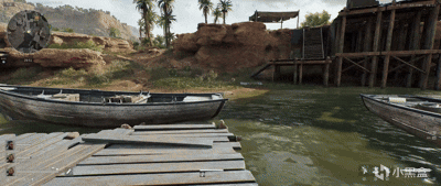 在「藍港碼頭」前往「荒廢村莊」的河邊鐵皮屋木板上。