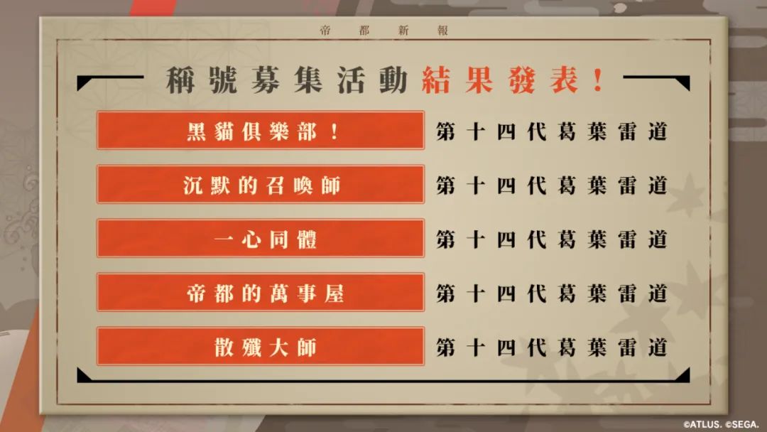 《RAIDOU Remastered: 超力兵团奇谭》现已推出早前社区活动票选称号DLC“授予新的称号给你吧”。