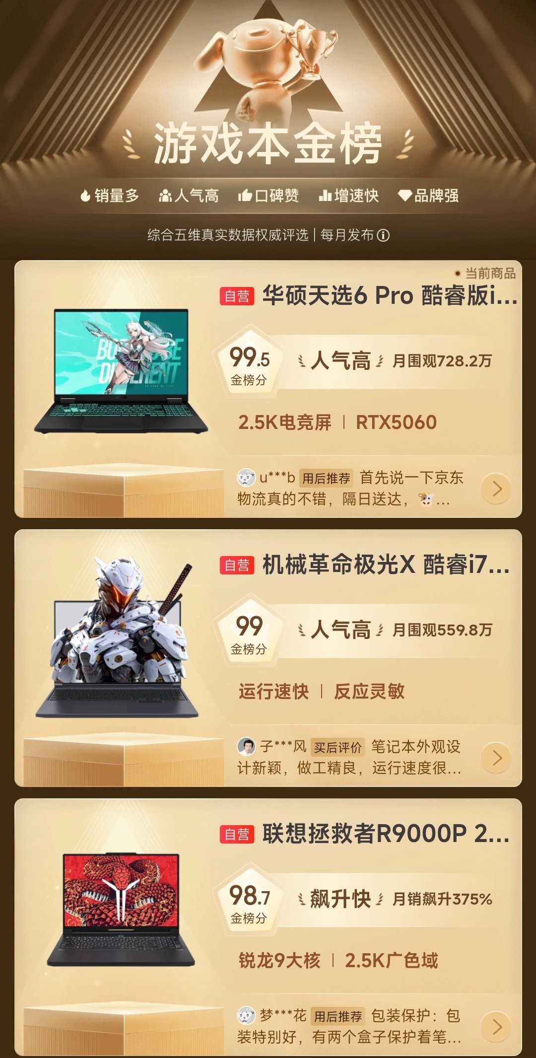 电商平台也有统计,高考后各家5060笔记本出货量激增,清一色的5060