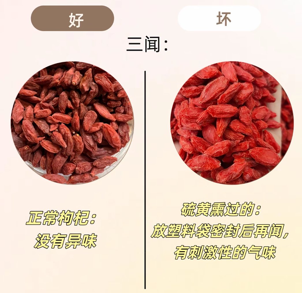 挑選枸杞也要避免顏色過於鮮豔的,正如那句越迷人的東西越危險,看來還是不能被表面功夫吸引,內在纔是最重要的
