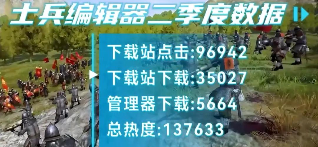 热度榜第六名-士兵编辑器。作者将和大大一直在不断优化这个功能完备、操作简便的兵种修改模组,以及提升对权游、织丰等大型MOD的兼容,相信持续更新下去,它功能性和稳定性一定会越来越强大!