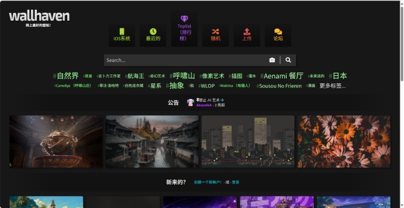 社區型壁紙平臺,可以說是壁紙網頁的老大。擁有超百萬張高質量圖片,支持按分類(動漫/人物/風景)、分辨率(4K/UHD)、純潔度(SFW/NSFW)篩選。無需登錄即可下載原圖,註冊用戶可收藏或上傳作品。