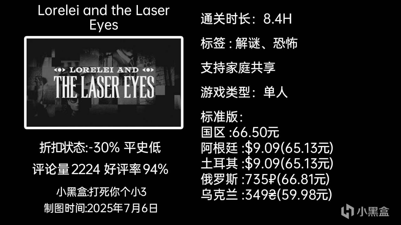 44. Lorelei and the Laser Eyes:解谜冒险复古,光影谜题挑战,艺术风格独特沉浸。