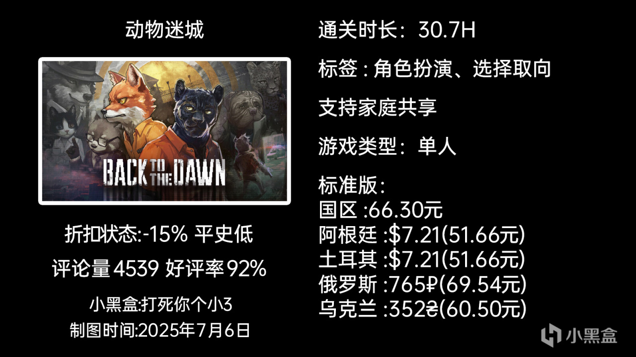 45. 动物迷城:动物都市探索,悬疑谜题推理,角色互动风趣幽默。