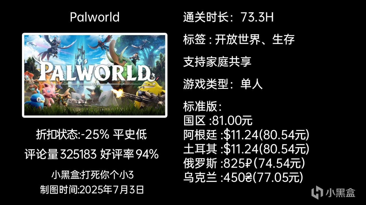 7. Palworld:宝可梦x生存缝合,枪械捕捉奇幻兽,自动化建造自由。