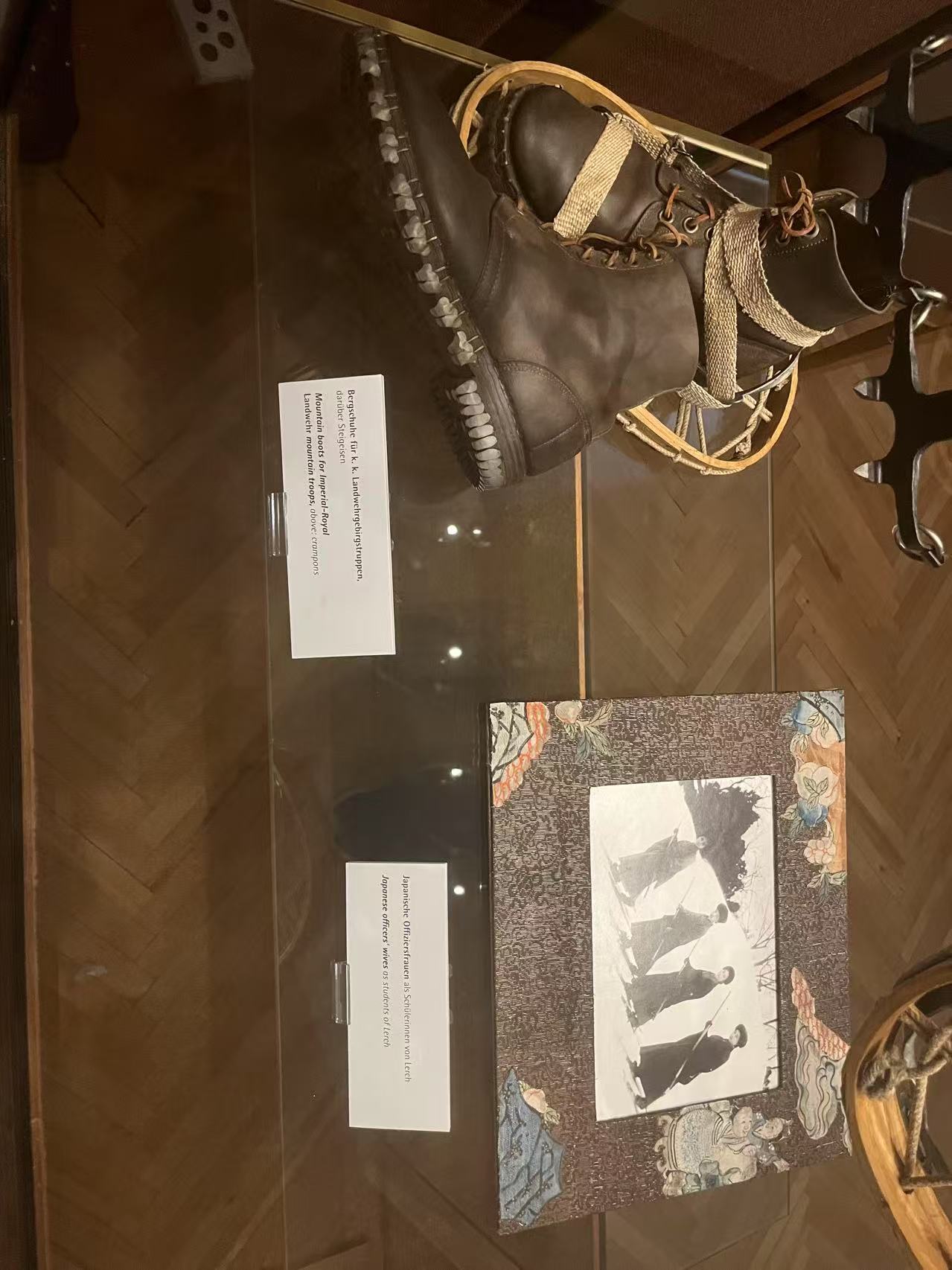 左边是山地师的靴子,右边照片里的是日本官员的妻子,她们疑似在和一位叫Lerch的奥匈帝国滑雪大师学习滑雪