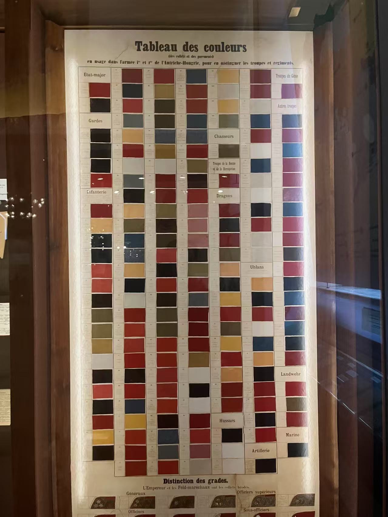 我尚未从那一排排整齐、标致的勋章中缓过神来,又撞见了一个大玻璃柜,里面分三排展示了奥匈帝国的军帽,大部分是骑兵的。